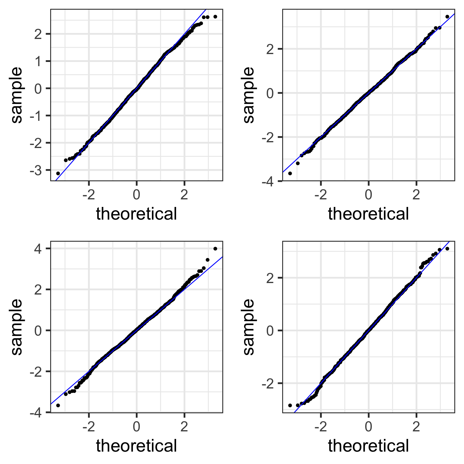 Thus, all the points in the QQ plots should theoretically fall in a line