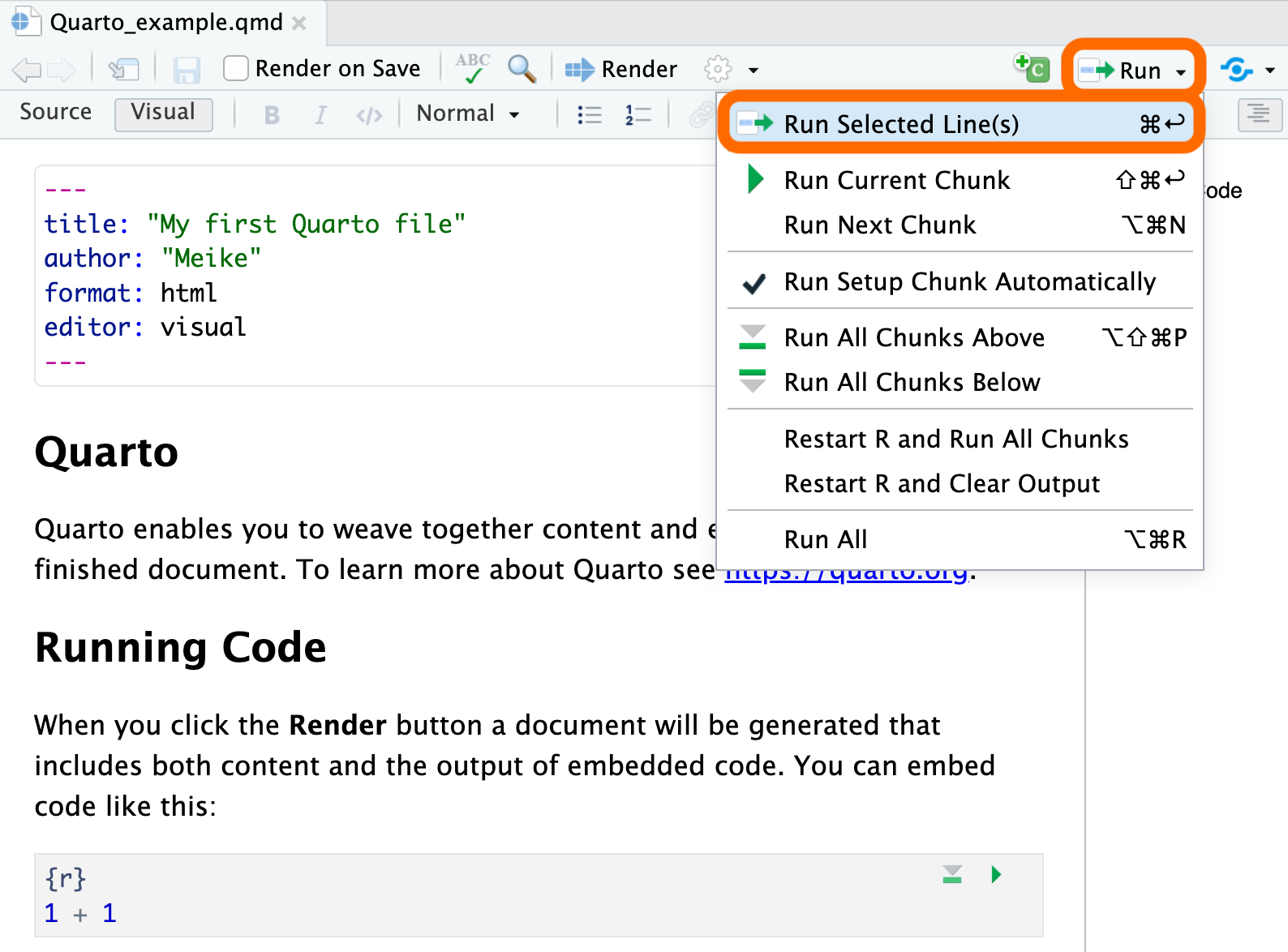 Try typing code below in your qmd (with shortcut) and evaluating it: