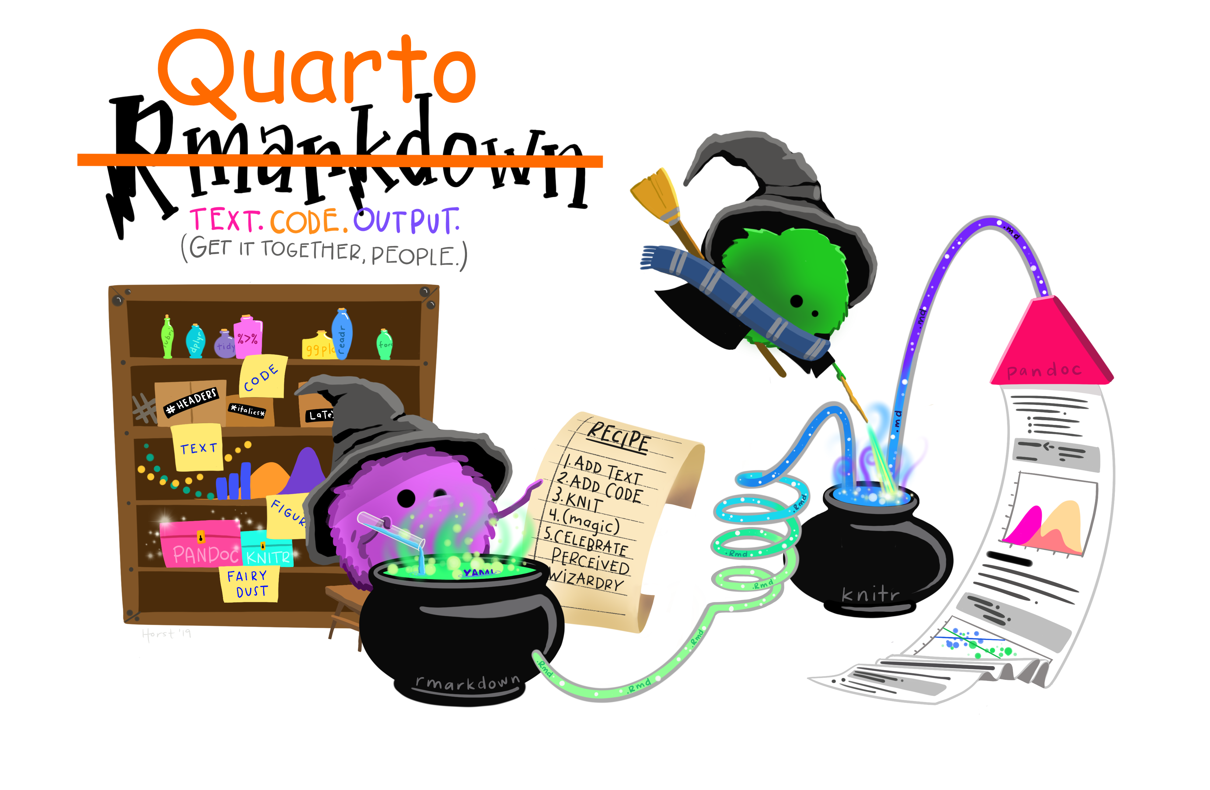 .qmd file = Code + textknitr is a package that converts .qmd files containing code + markdown syntax to a plain text .md markdown file, and then to other formats (html, pdf, Word, etc)