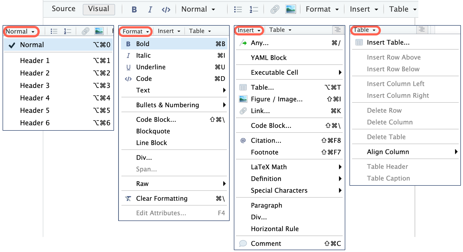 Newer versions of RStudio include a Visual editor as well that makes formatting text similar to using a word processor.