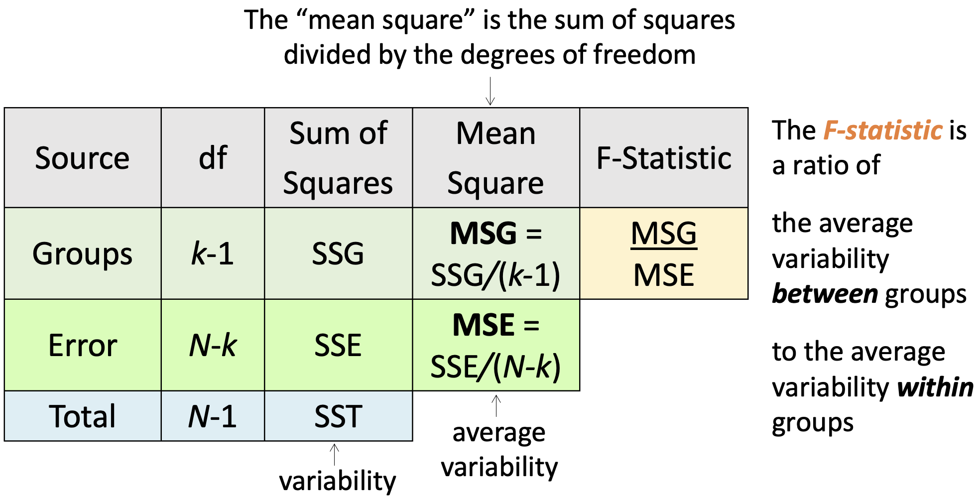\[F = \frac{MSG}{MSE}\]