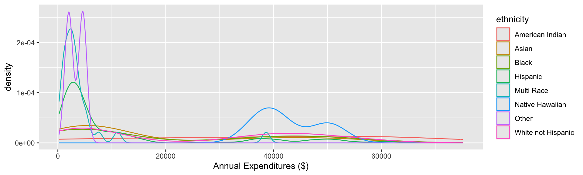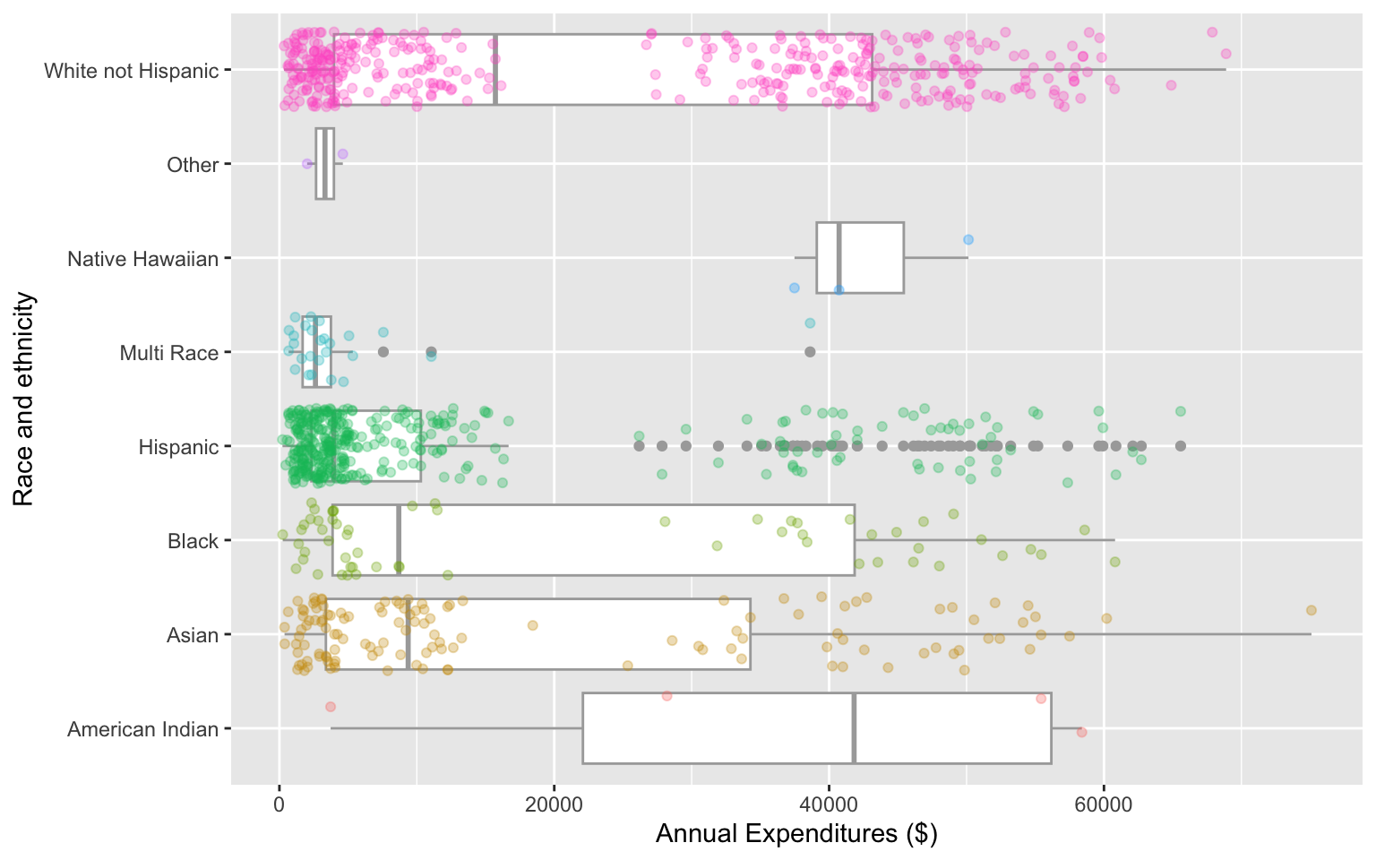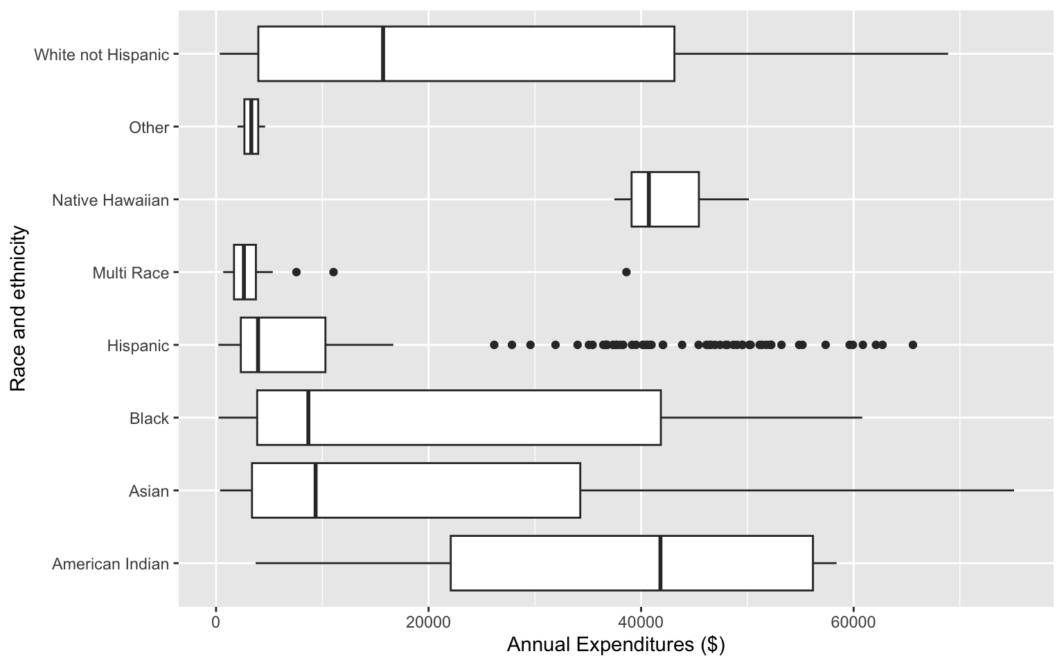 - Found that the mean annual expenditure on Hispanics was less than that on White non-Hispanics.