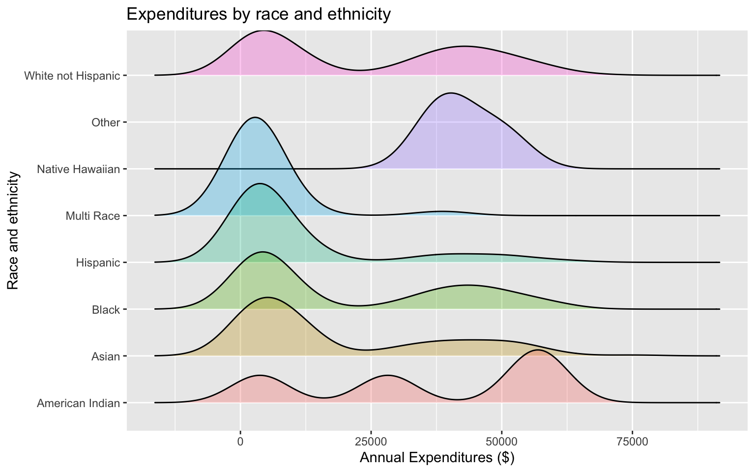 | Multi Race | expenditures | 26 | 669 | 38619 | 2622.0 | 2059.75 | 4456.731 | 7332.135 | 1437.950 | 2961.514 |