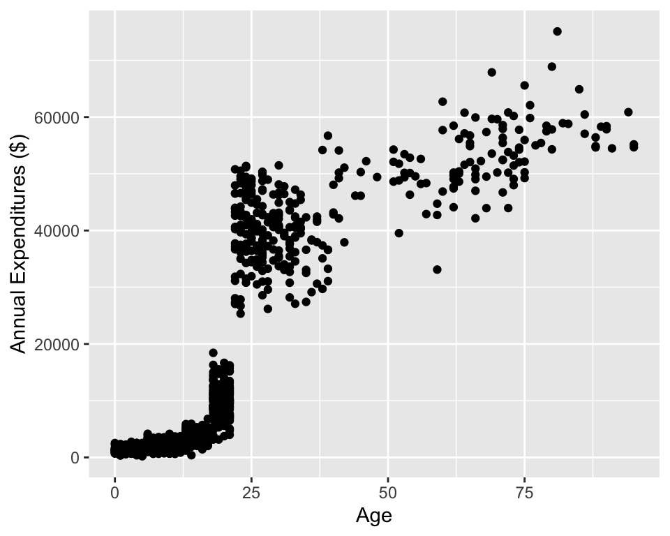 names(dds.discr)[1] "id" "age.cohort" "age" "gender" "expenditures"