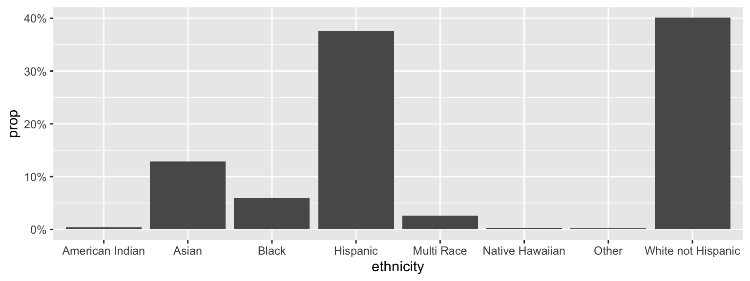 $ ethnicity <fct> White not Hispanic, White not Hispanic, Hispanic, Hispani…