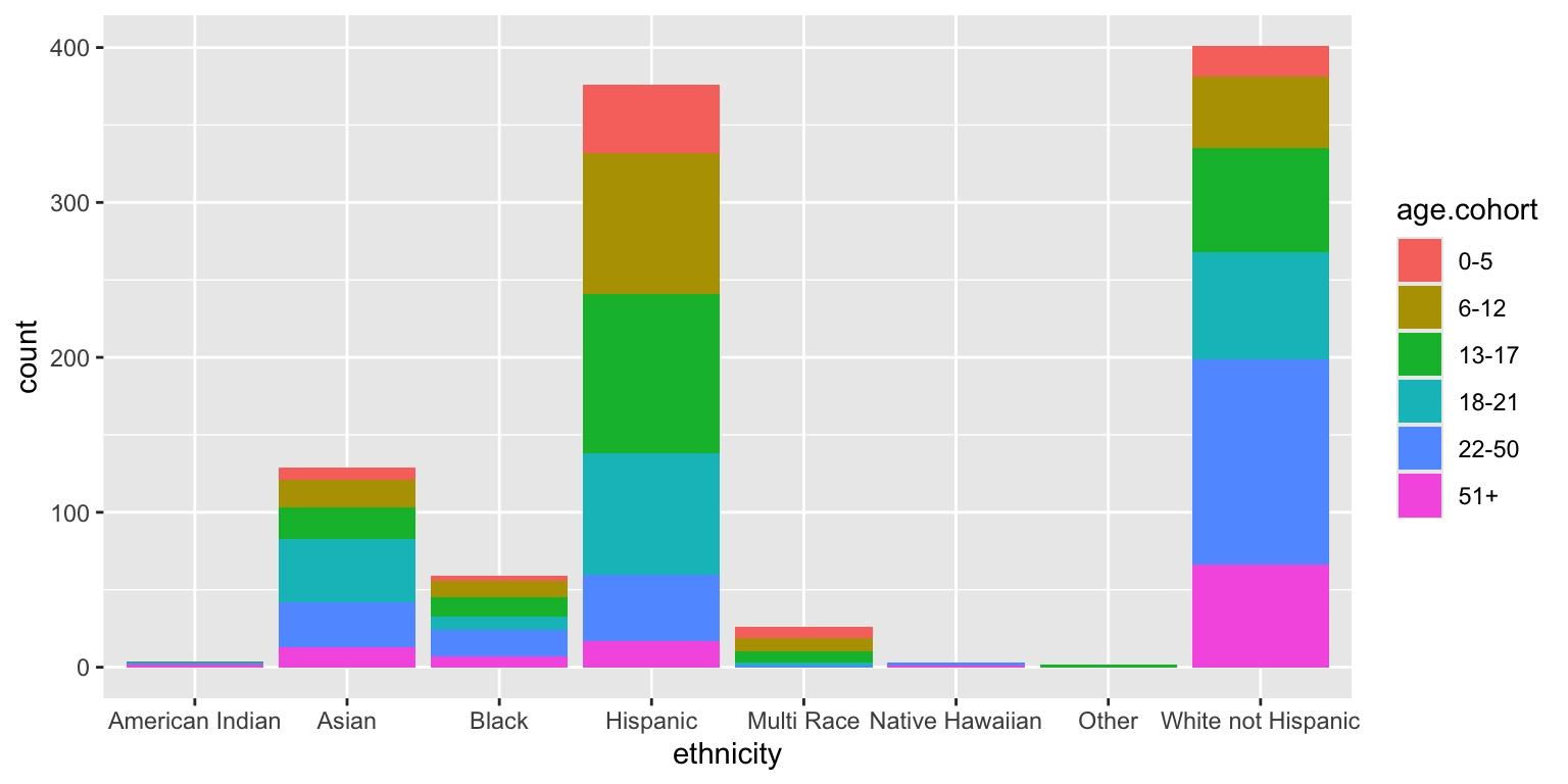 $ age.cohort <fct> 13-17, 22-50, 0-5, 18-21, 13-17, 13-17, 13-17, 13-17, 13-…