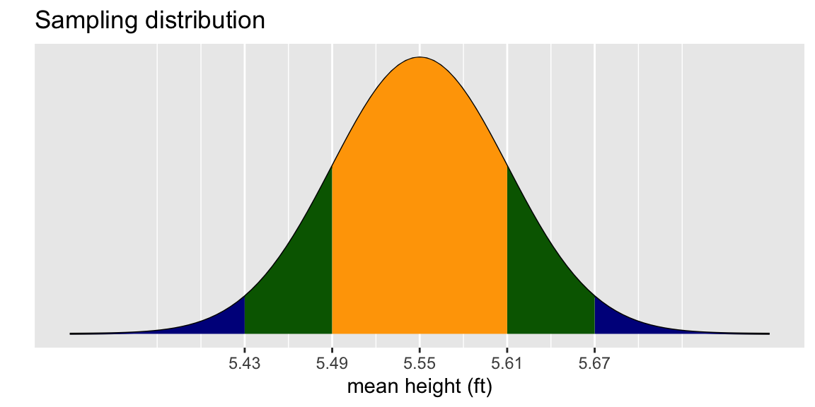 - A random sample of 30 high schoolers has mean height 5.6 ft.