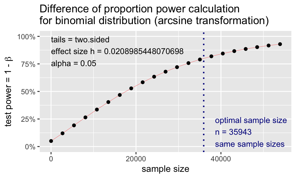 ## `pwr`: __sample size__ for two proportions test