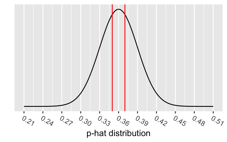Testing \(H_0: p=0.36\) vs. \(H_A: p \neq 0.36\).