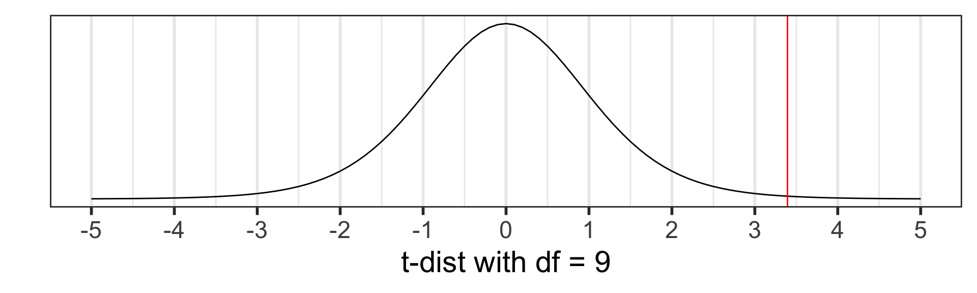 The \(t\) distribution degrees of freedom are now: